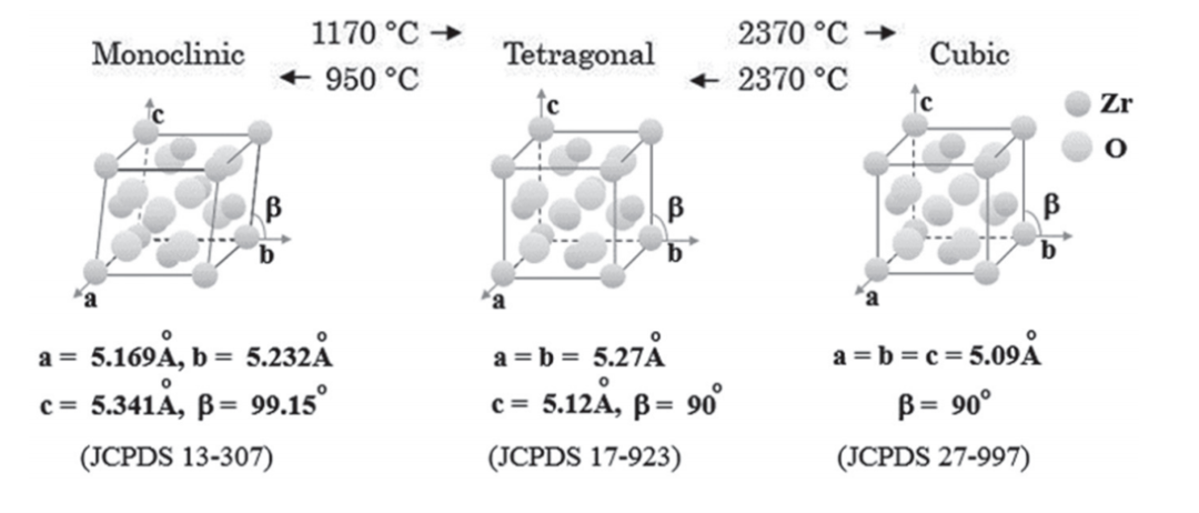 氧化鋯是一種存在單斜晶型(m)、四方晶型(t)和立方晶型(c) 3種形式的多晶材料,在一定溫度條件下會(huì)相互發(fā)生轉(zhuǎn)換。