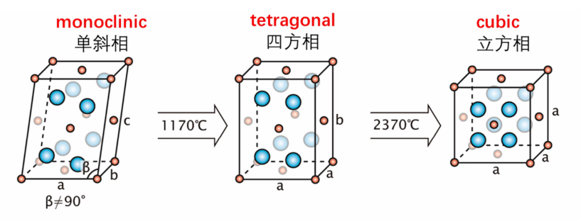 (圖1: 氧化鋯三種晶相結(jié)構(gòu))
